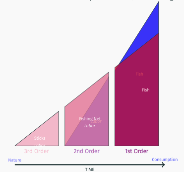 Tried to argue that production processes with more capital are more productive, and that they have a longer “average period of production” due to roundaboutness