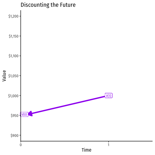 PV=FV(1+r)nPV=1000(1+0.05)1PV=10001.05PV=$952.38