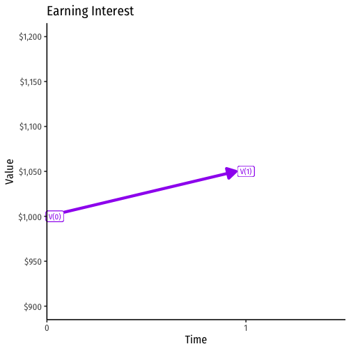 FV=PV(1+r)nFV=1000(1+0.05)1FV=1000(1.05)FV=$1050